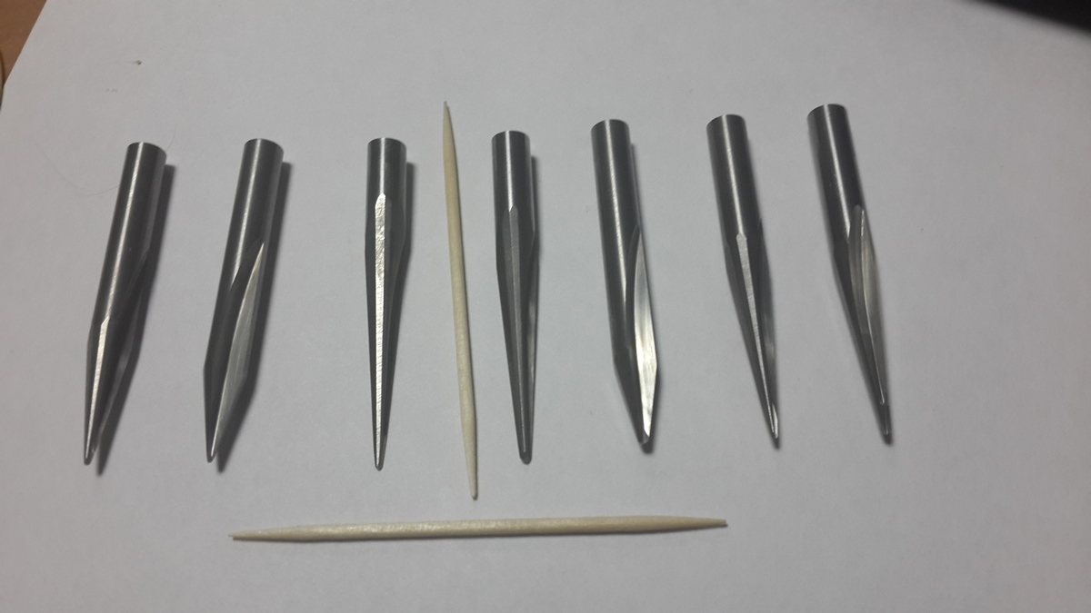 1. набор из 7ми (разной заточки) фрез для 3D обработки.