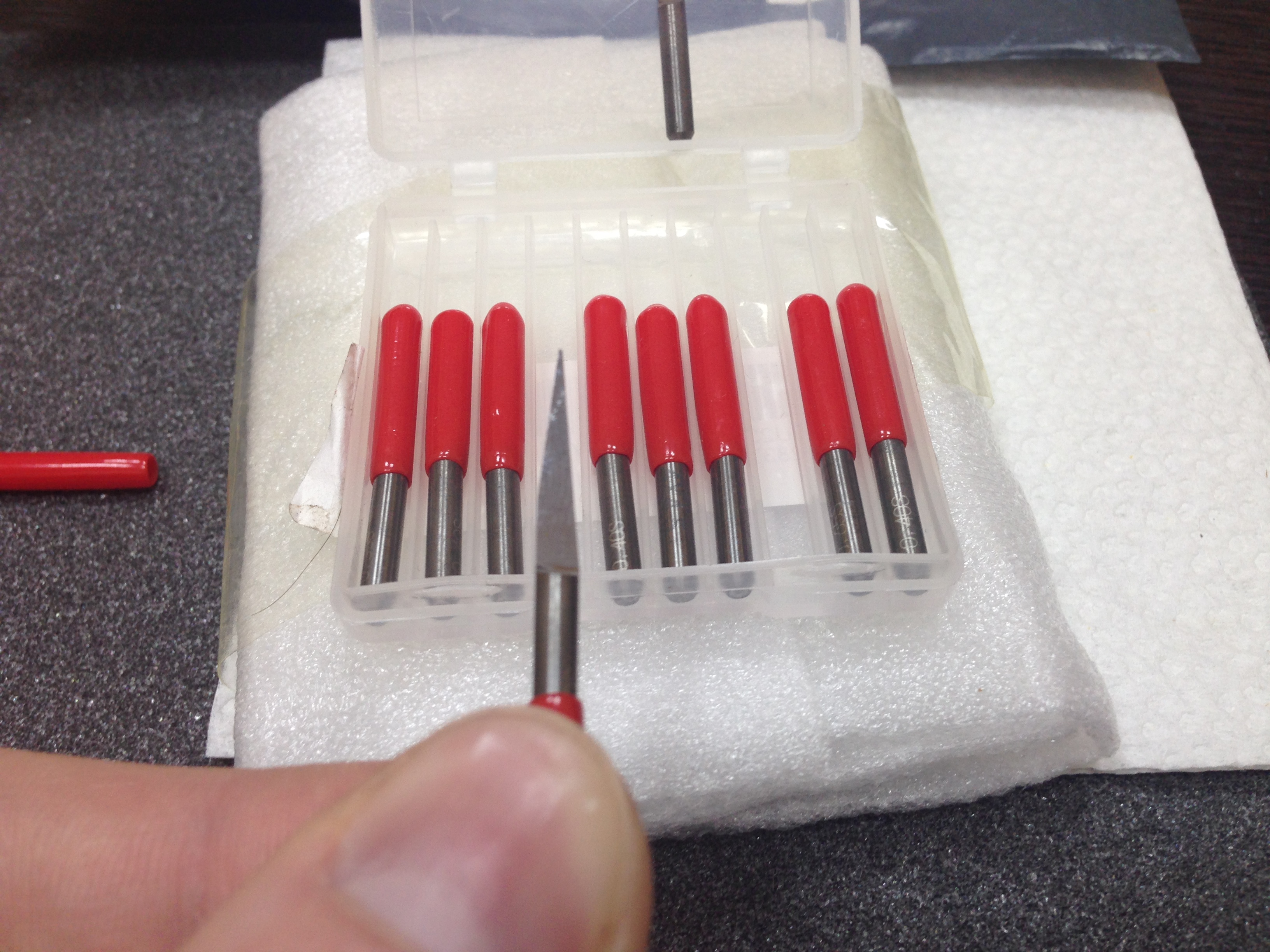 фрезы пирамидки, мегадорогие, шли мегадолго 42 дня, упакованы в мегабольшуюкоробку для фрез. Вроде как по дереву. Маркировка KT3LJD3-0245