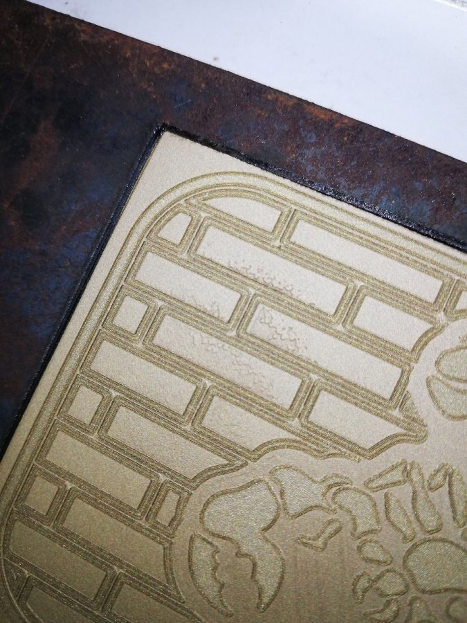В некоторых местах при глубокой гравировке появляются артефакты :bad:, которые потом ничем не вытравить.