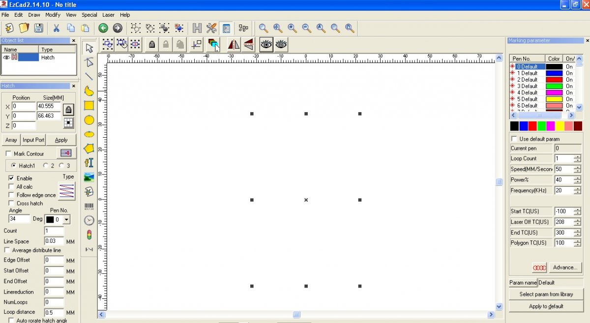 Линза F-290 mm 200х200 стол параметры вашего файла не менял ... делал на оцинковкеУ меня стоит линза 110 мм, выбирал сам исходя из предстоящей работы. В правой части меняю только мощность, скорость и частоту. Необходимо делать тот размер поля который предназначен для вашей линзы. По моему суждению чем больше линза(рабочий стол) тем расплывчатее детали, и наоборот с рабочим полем например 50 мм можно будет делать пробиры для колец. Ну как то так.