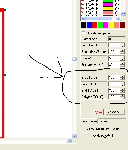 У меня стоит линза 110 мм, выбирал сам исходя из предстоящей работы. В правой части меняю только мощность, скорость и частоту. Необходимо делать тот размер поля который предназначен для вашей линзы. По моему суждению чем больше линза(рабочий стол) тем расплывчатее детали, и наоборот с рабочим полем например 50 мм можно будет делать пробиры для колец. Ну как то так.У вас стоит линза для рабочего поля 120 мм?