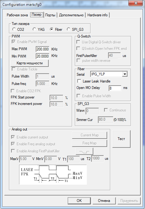 Конкретно у нас есть китайский 20 Вт маркер, работающий под управлением EzCad.