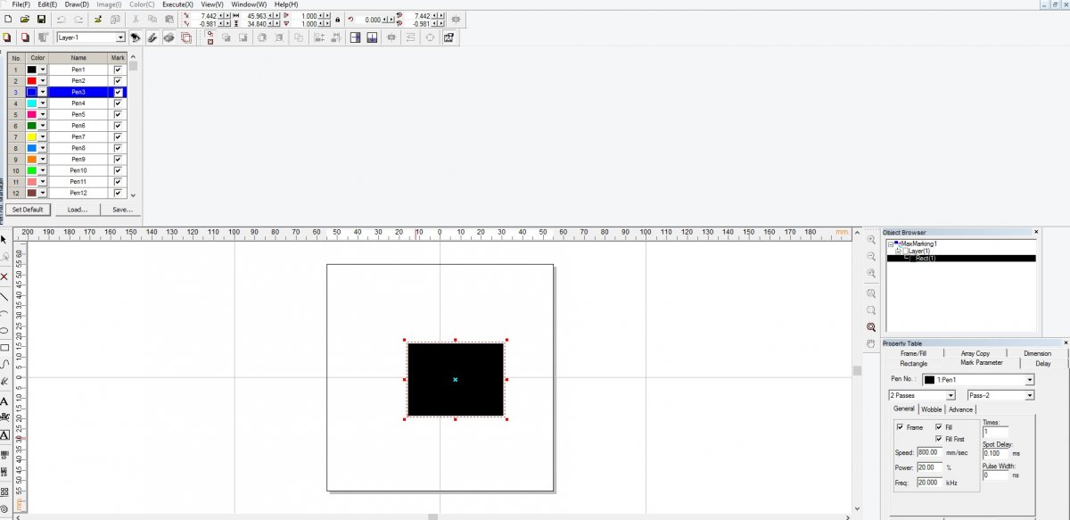 Мы поставляли некоторые модели станков с определённой версией программы MaxMarkingТикеты на свойства объекта - так чтобы хранили всё: и шриховку, и параметры лазера.