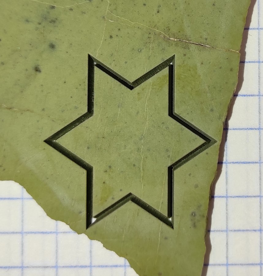 1. При углублении производительность процесса снижается. Свыше 2 мм в ряде случаев углубиться не удалось. Обдув воздухом и ручная подстройка фокуса в процессе резки несколько улучшают результат.