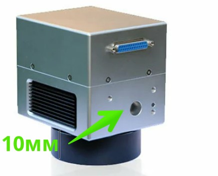 Если перед сканатором убрать блок для внешней лазерной указки и включить лазер, то видно, что весь луч в сканатор не заходит. Получаем как минимум 1 или 1.5 мм засвеченную обводку вокруг входящего отверстия у сканатора.
