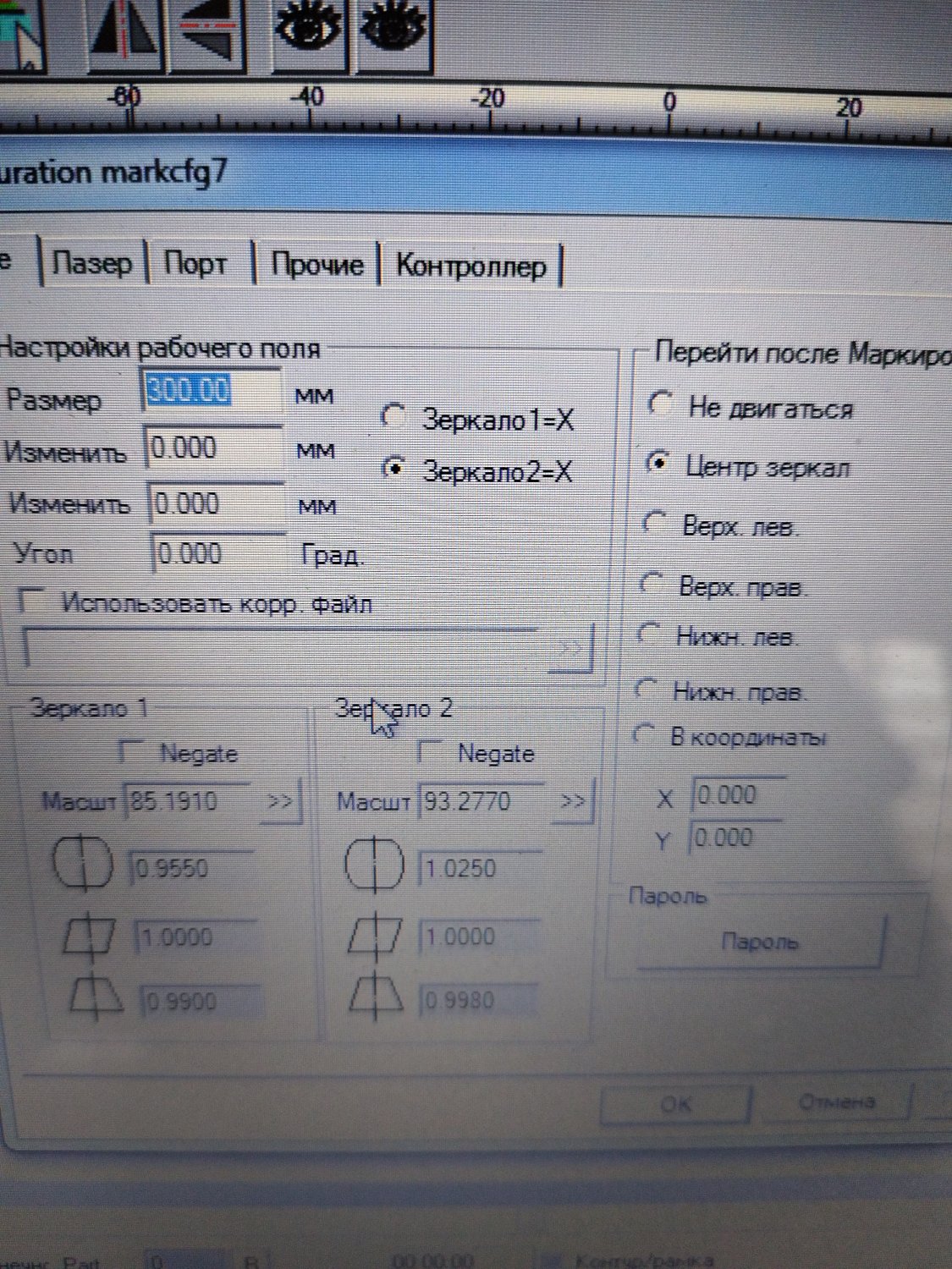 4 рисунок. Настройки под сканатор. Без нужды не надо трогать. Там еще кнопка настройки красного луча имеется. По ней можно настроить указатель зоны маркировки, которая обозначается красным лучом по F1.