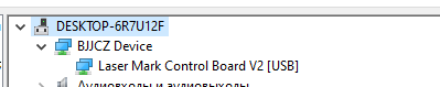 В каком состоянии сам лазер? Красный луч есть, станок включается как обычно, внешне никаких изменений, в системе драйверы устанавливаются и он опознается как устройство (скрин ниже).